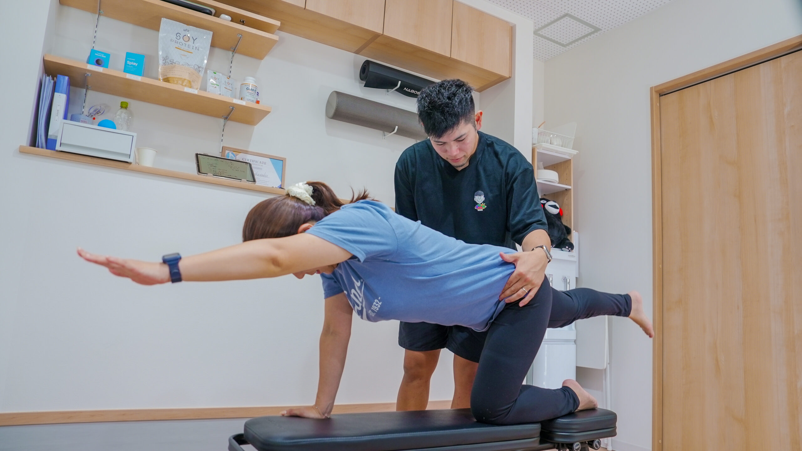 現在のお客様のお身体がどのような状態なのかをチェックします。怪我を防ぐ大事な工程です。